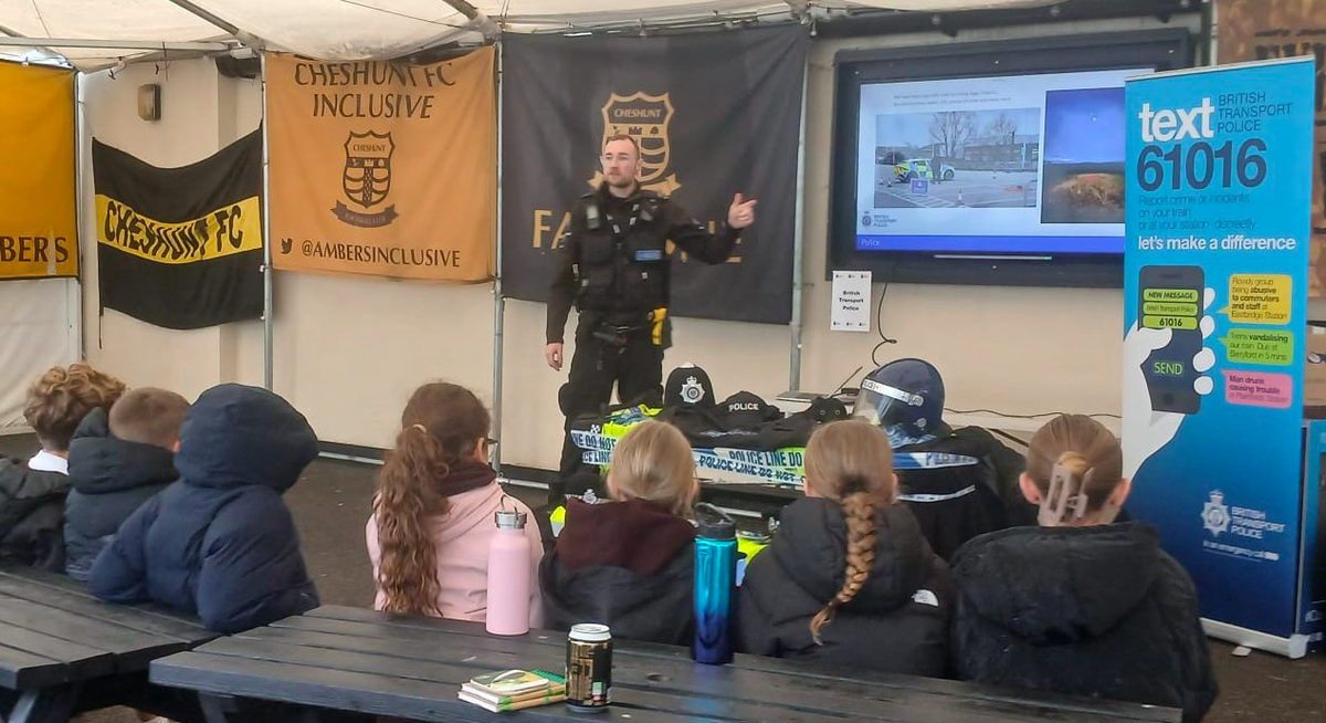 The event, at Cheshunt Football Club, courtesy of Chairman, Dean Williamson, included sessions from the following participating agencies; – Hertfordshire Constabulary (local Safer Neighbourhood Team), Lee Valley Regional Park Authority, British Transport Police, School Nurses (part of the Hertfordshire Family Centre service) and East of England Ambulance Service. The workshops gave pupils the unique opportunity to learn valuable skills from the professionals, through practical demonstrations and discussions in real-life situations.